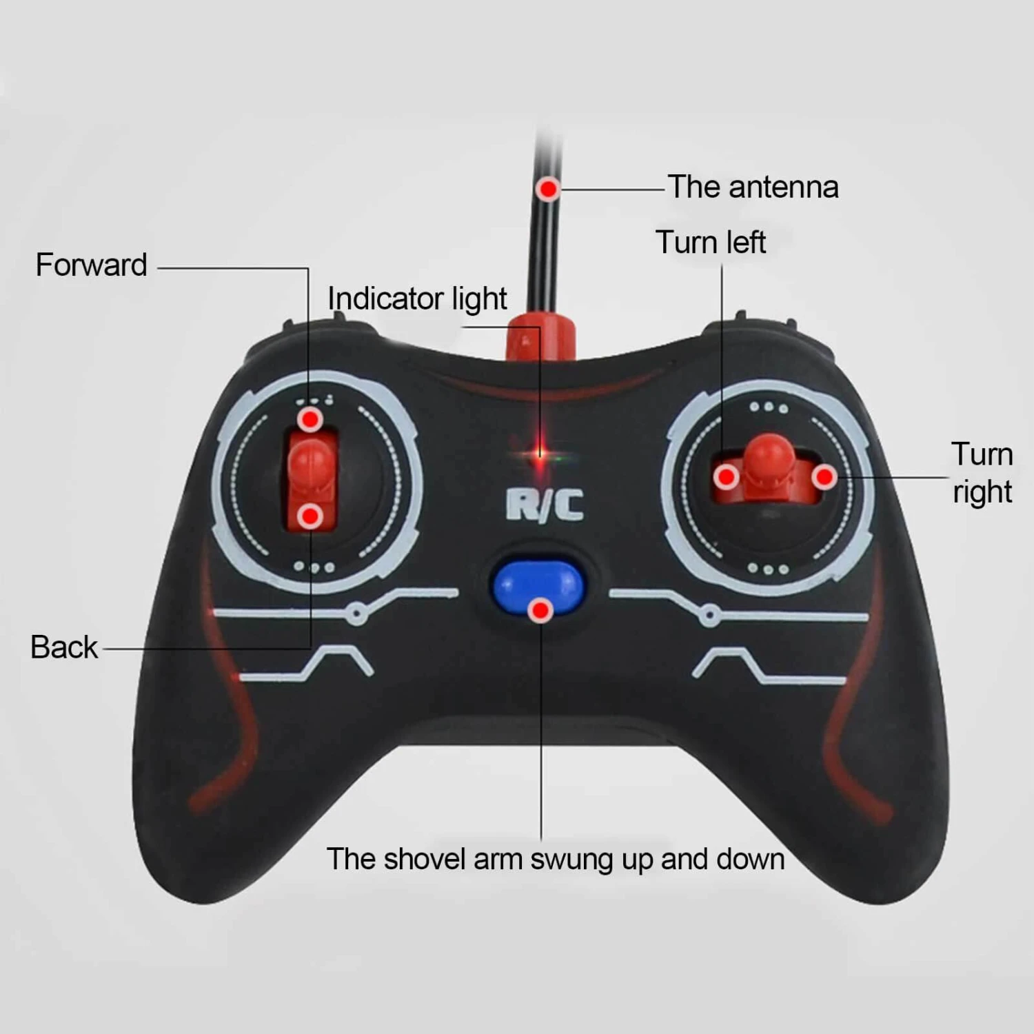 - 360° Rotation: The front of the engineering truck can swing around 45°, with the forward summary, it can rotate 360 degrees, the shovel arm can swing up and down, and the operation is free.