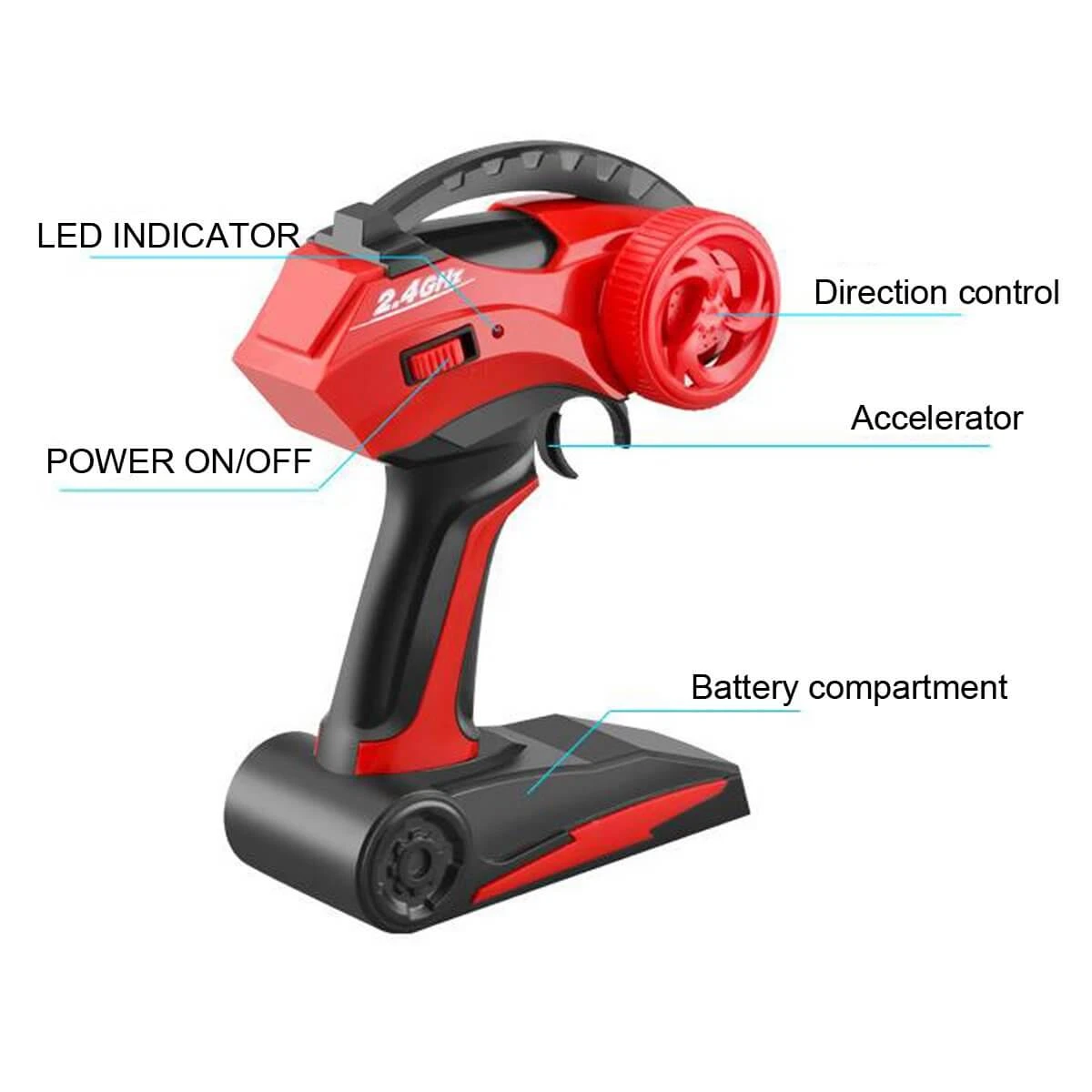 2.4Ghz Radio System: Independent 2.4 Ghz Strong Transmitter system allow two or more kids’ rc cars racing together at the same without interface, control range is up to 260 feet. New gun type transmitter design, easier for children to control.