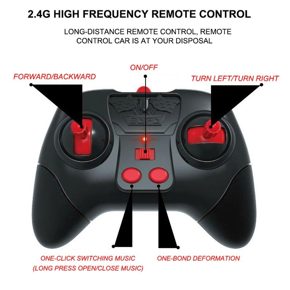 Smart Remote Controller: The remote control adopts 2.4GHz technology, which is quite sensitive and responsive, and you can control it with the watch,easy to operate. Deformation Car Toy includes 7.4V 1400mAh battery pack,ultra-large capacity and enables you to fully enjoy every thrilling driving moment.