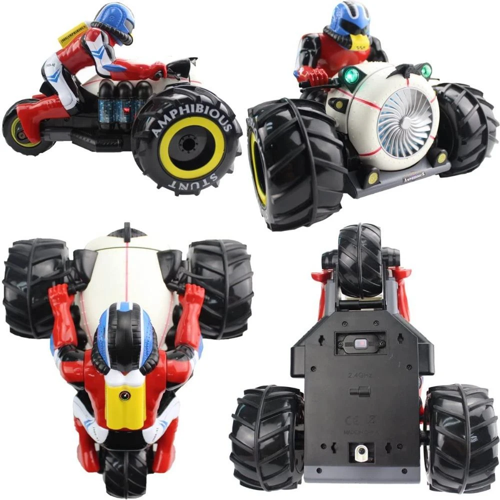 Functions: 360 degree flip,amphibious stunt,motor racing, light