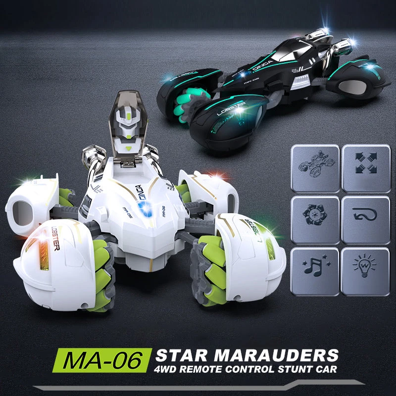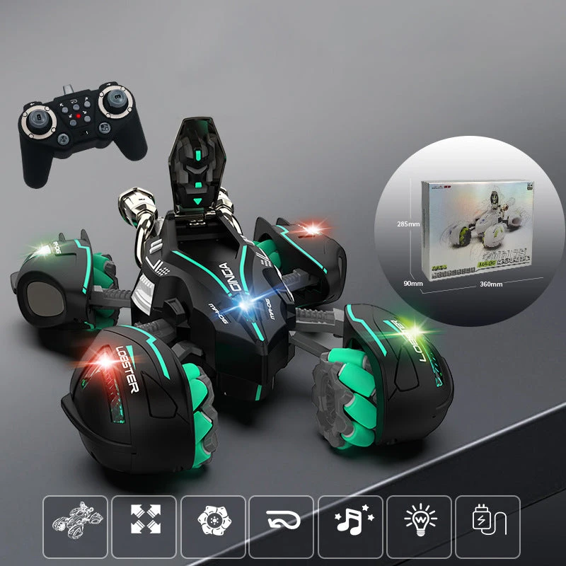 - Mecanum stunt tires, the car has 360° rotation, dual-mode one-summary deformation, and oblique drift stunts.