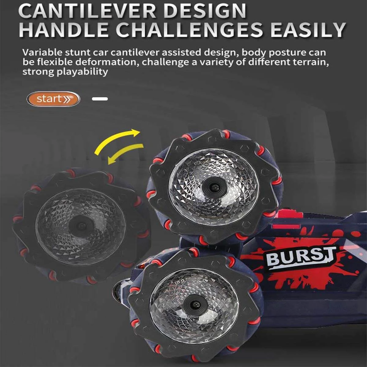 Multifunctional Stunt Car: Unique McKenna 6-wheel design, one-summary to achieve 360-degree rotation, horizontal or tilted drift; A variety of cool shapes can be freely transformed, novel and interesting.