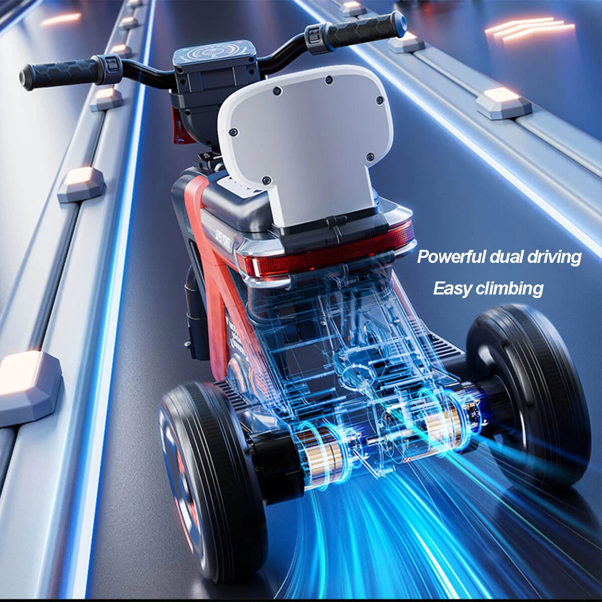 Conquer Multiple Terrains: Powerful dual driving force, anti-skid and wear-resistant tires, your kids can ride on all kinds of ground and enjoy the driving pleasure anytime and anywhere.