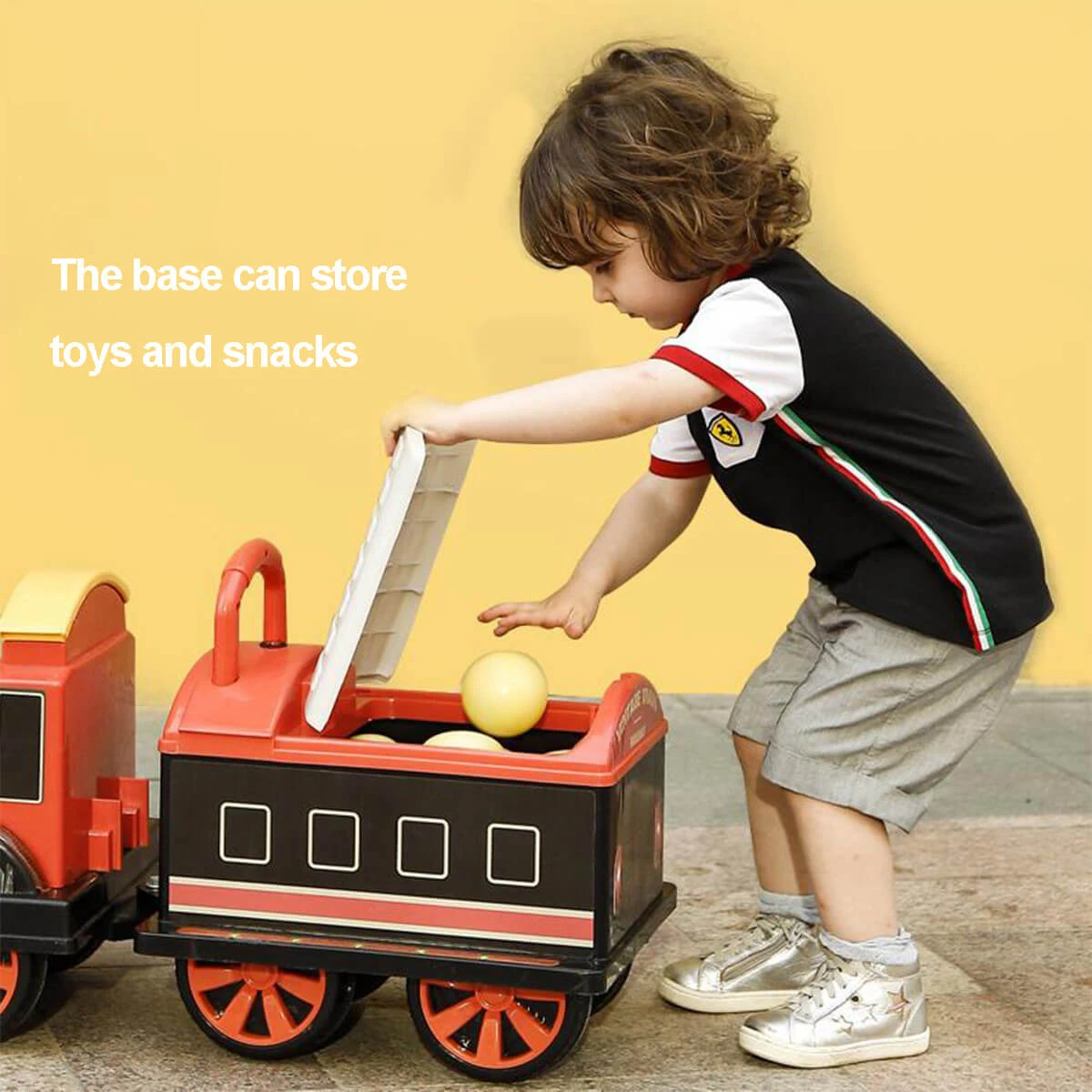 Safe & Smooth: Equipped with 8 stable wheels, anti-slip bands and comfortable backrest ensure smooth riding experience and avoid kid’s leaning back. The seat can hold up to 132lbs, simulated train outlook and colorful appearance will cheer them up.
