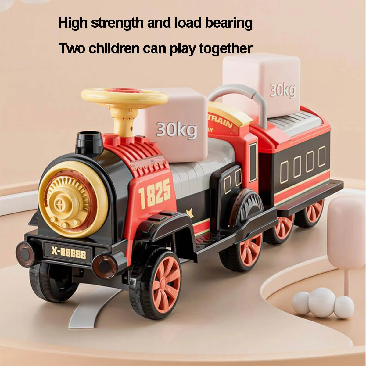 Electric Ride On Train: It freely combine compartments to meet the different driving needs of children. Your child can play on their own or bring a friend along for endless adventures in this vehicle. They can turn the steering wheel to control direction, under seat storage box can also store kid’s toys, books or snacks.