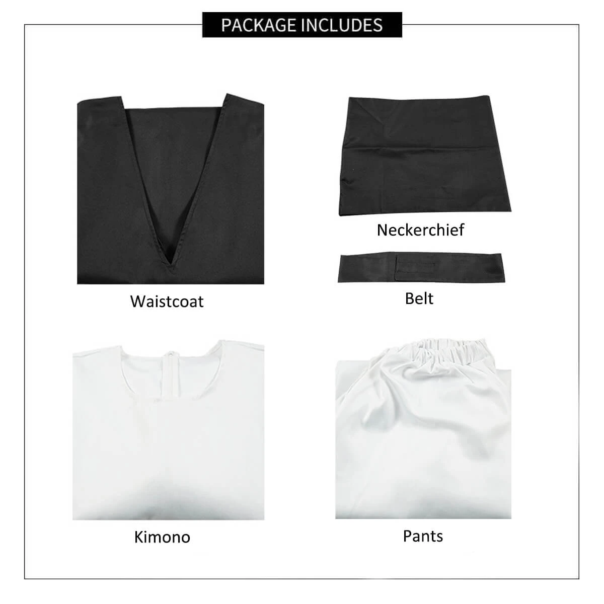 - Package include: 1x vest, 1x neckerchief, 1x tops, 1x pair of pants, 1x belt.