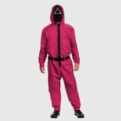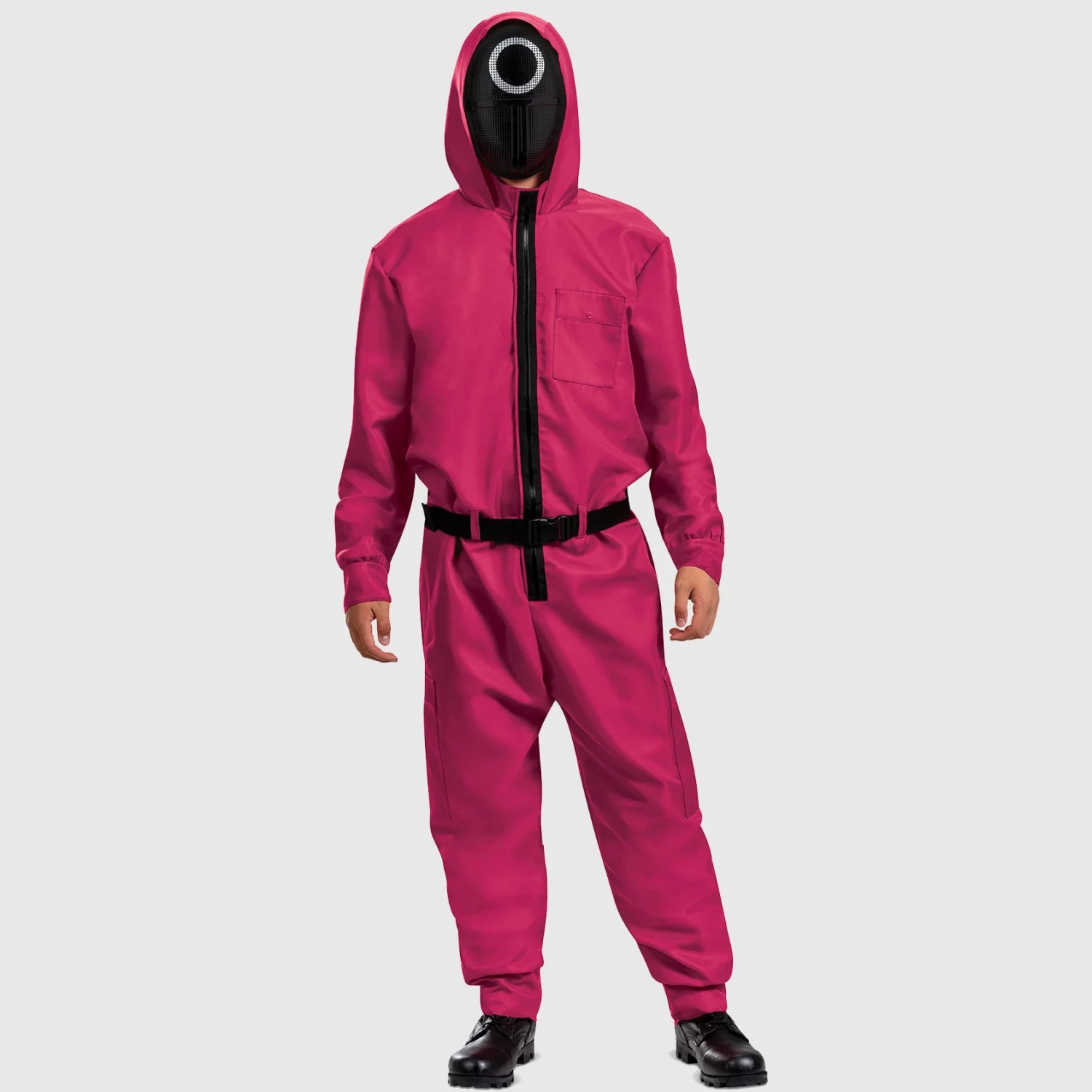 Prepare to take part in the game of all games. Featuring the iconic mask with one of three possible random symbols, a jumpsuit, a belt, gloves and mask, this guard outfit will let everyone know how much you love the legendary series.