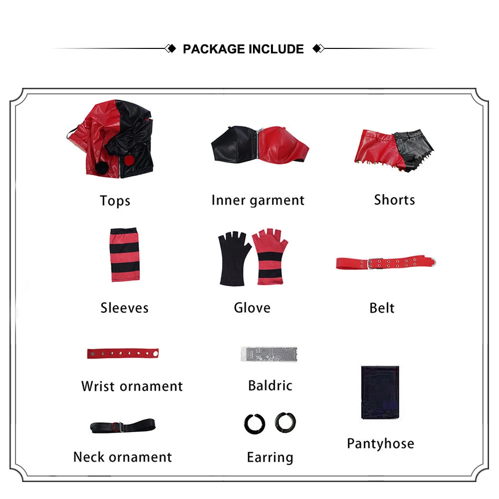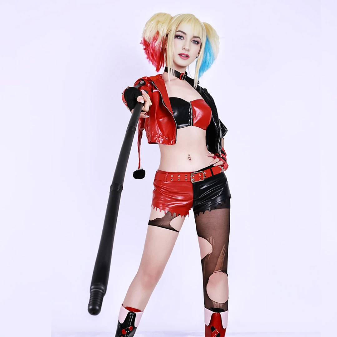 Adults Joker Harley Costume 2024 ISEKAI Sexy Outfit Black and Red Jacket Shorts Accessories Full Set.Â