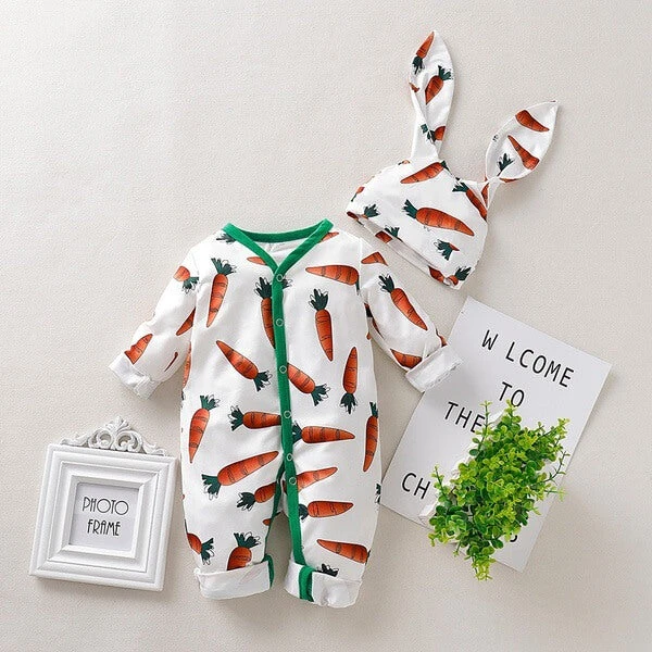 - Design: Baby boy girls romper jumpsuit, cartoon carrot print, long sleeves, this round neck romper makes your baby more cute and adorable in this Easter.