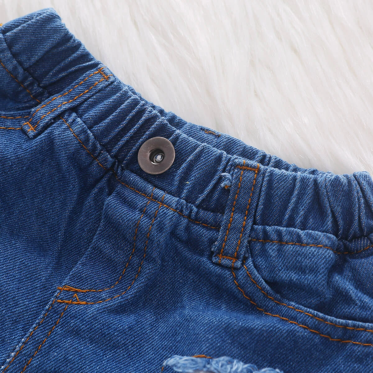 - The baby girls off the shoulder stars stripe ruffle crop top with Independence Day elements print. Ribbed jean short pants, elastic waist, easy to wear and take off.Â