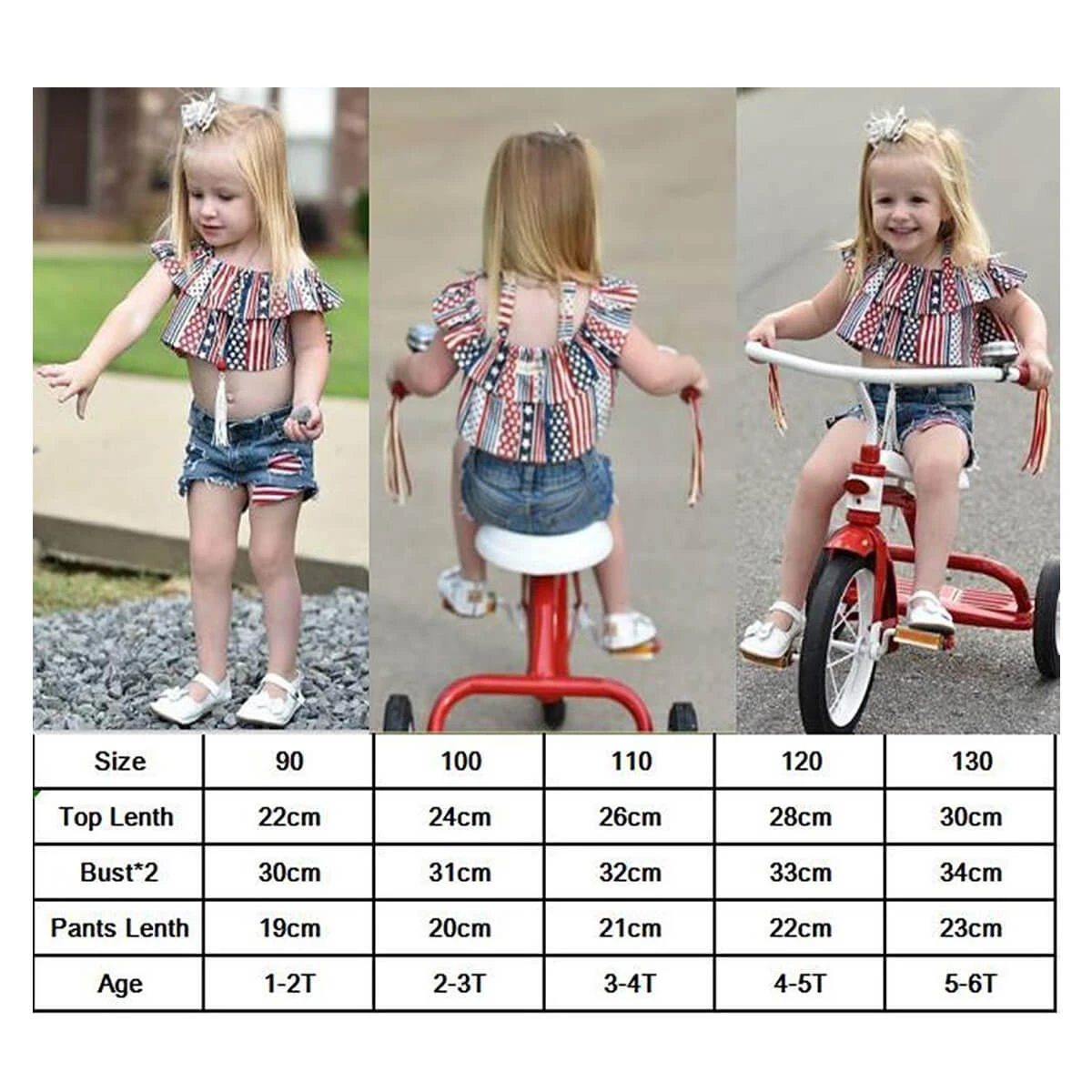 - Package include: 1x independence day tops+1x denim shorts.
