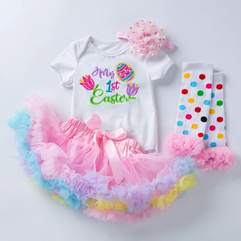Baby Girl Easter Outfit My 1st Easter Dress Up Romper Tulle Skirts Headbands Leg Warmers Princess Set