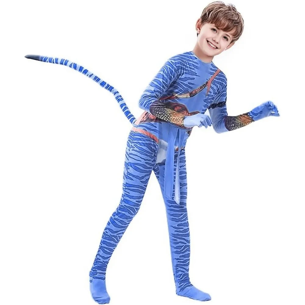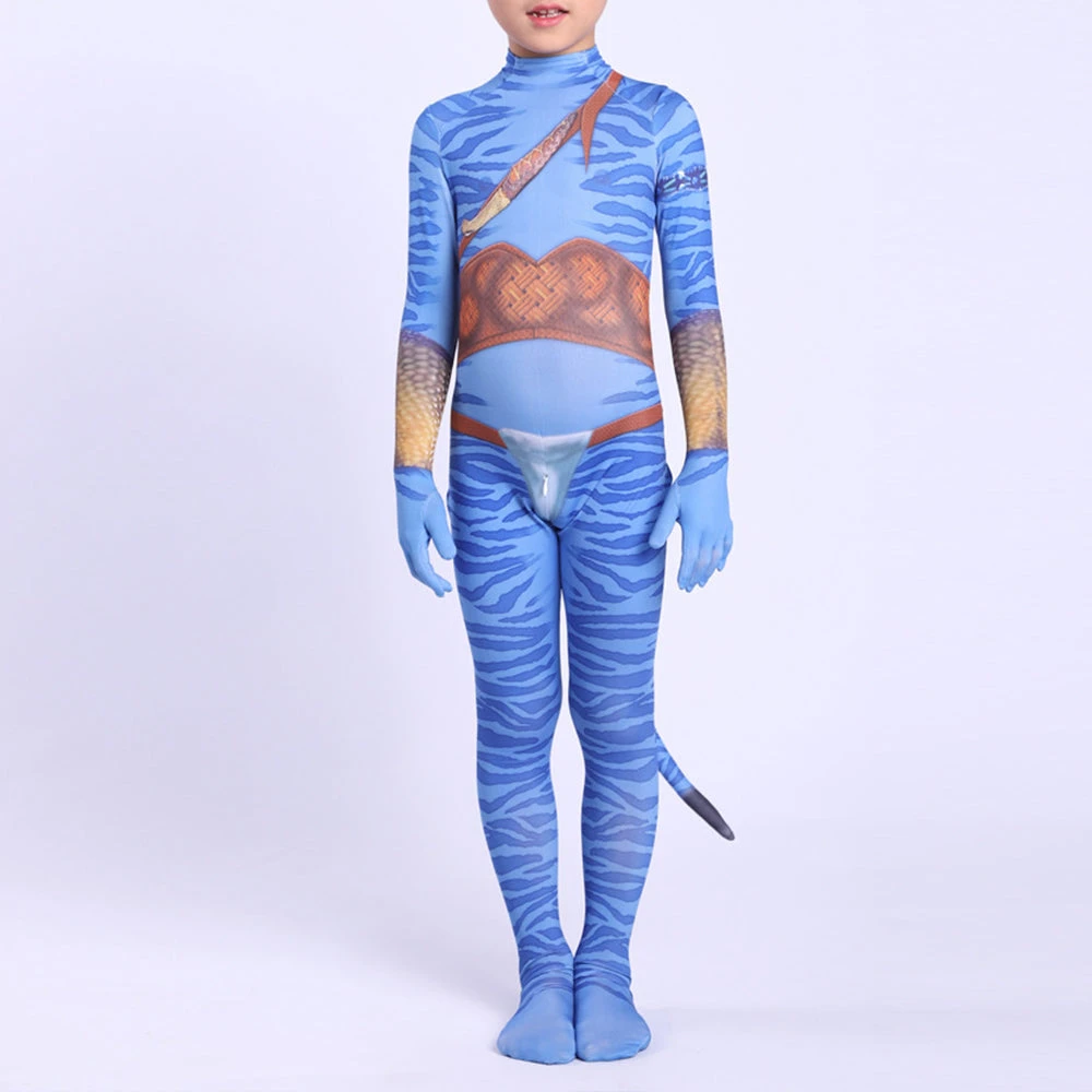 Boys The Way of Water Sully Costume Kids Jack Jumpsuit with Tail for Halloween.