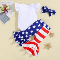Newborn Toddler 1st 4th Of July Outfit Romper Pants Headband 3pcs Suit American Flag Costume