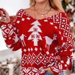 Women Christmas Sweater Criss Cross Backless Pullover Christmas Red Sweater With Long Sleeves