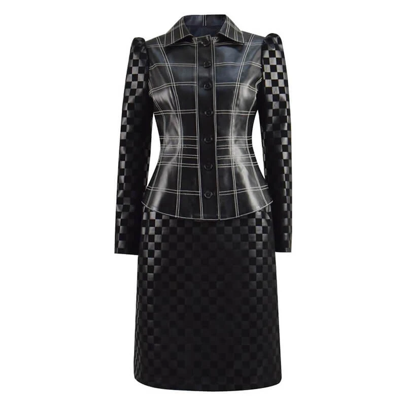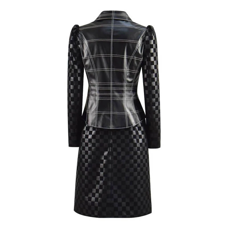 - Unique girls ​costume, classic faux leather skirts suit has summary along the top to fasten. The short skirt is designed with zipper closure and is matched with a pair of black gloves to perfectly present character: Curella.