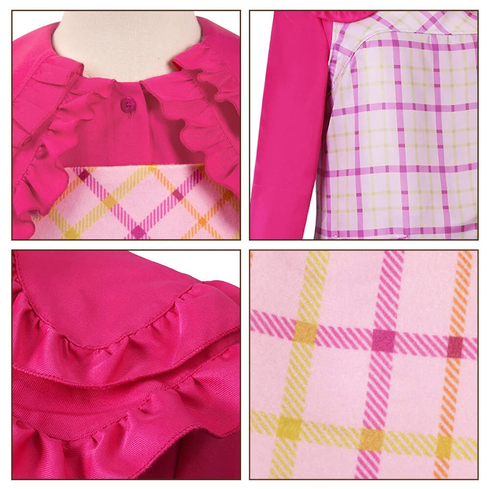 - This Enid shirt features a double layers lotus collar with ruffled trim, long-sleeved design with bright color, makes you look more flattering. The outside of Enid costume is a plaid dress with concealed side zipper closure which makes the costume easy to put on and take off.Â