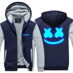 DJ Marsh-mallo Jacket Thick Fleece Coat DJ Rock Smiley Face Zipup Hoodies Winter Clothes