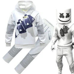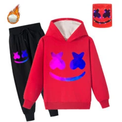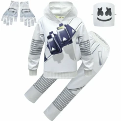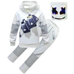 Boys Girls DJ Marshmallo Costume Smile Face Casual Tops And Pants 2pcs Sweatshirt Suit For Kids