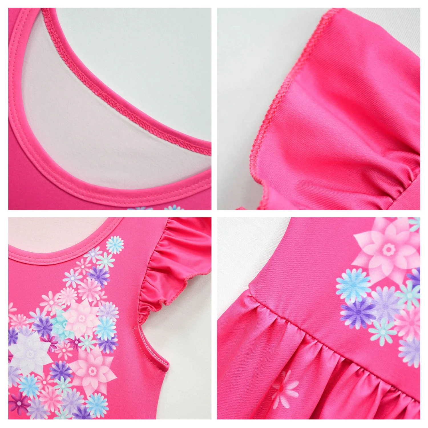- Elastic fabric with all printing details, short/fluffy sleeves, colorful and fashion for kids girls Isabela Cosplay Outfit Dress up.