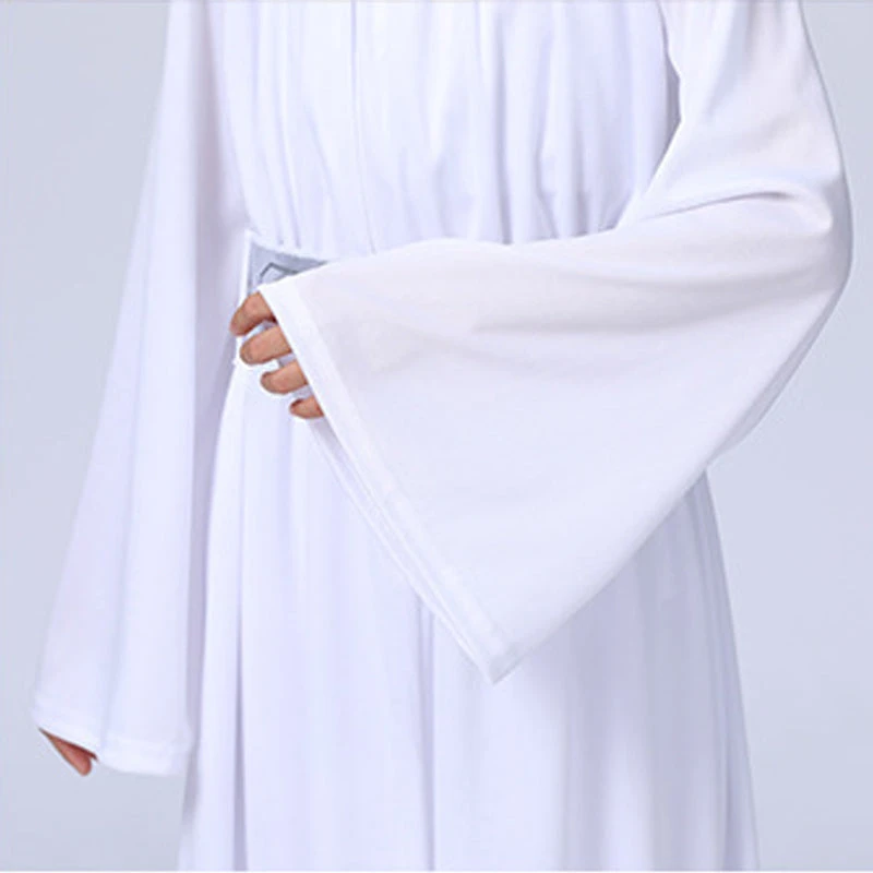 Girls Leia Costume Princess Hooded White Dress with Belt for Halloween Carnival.