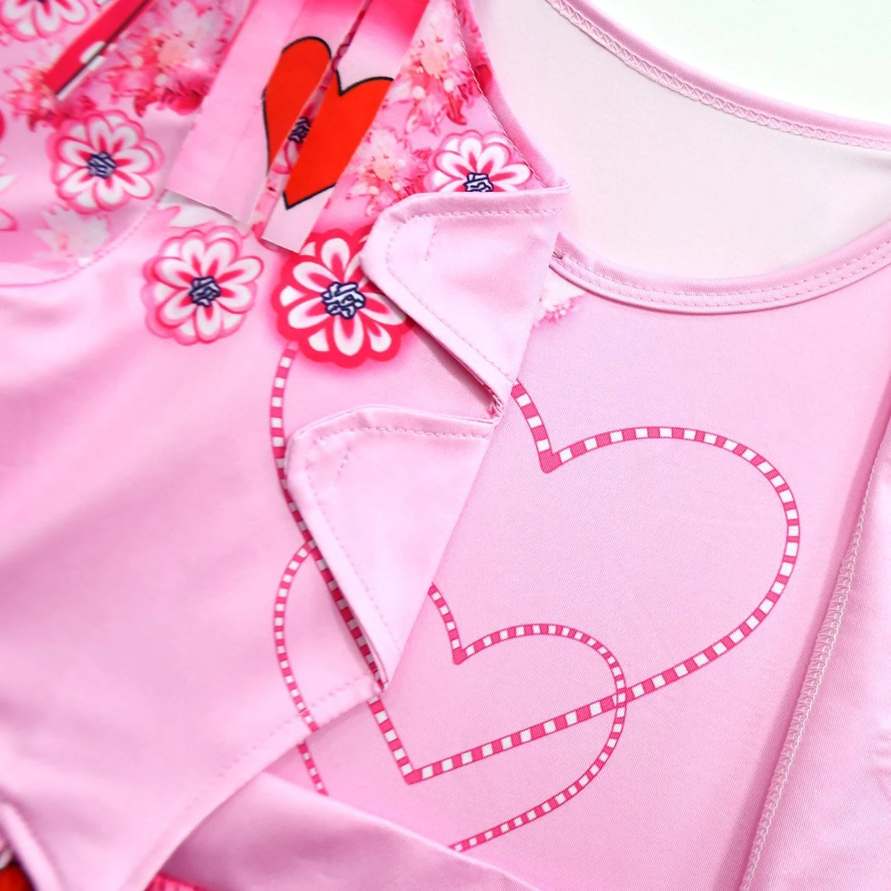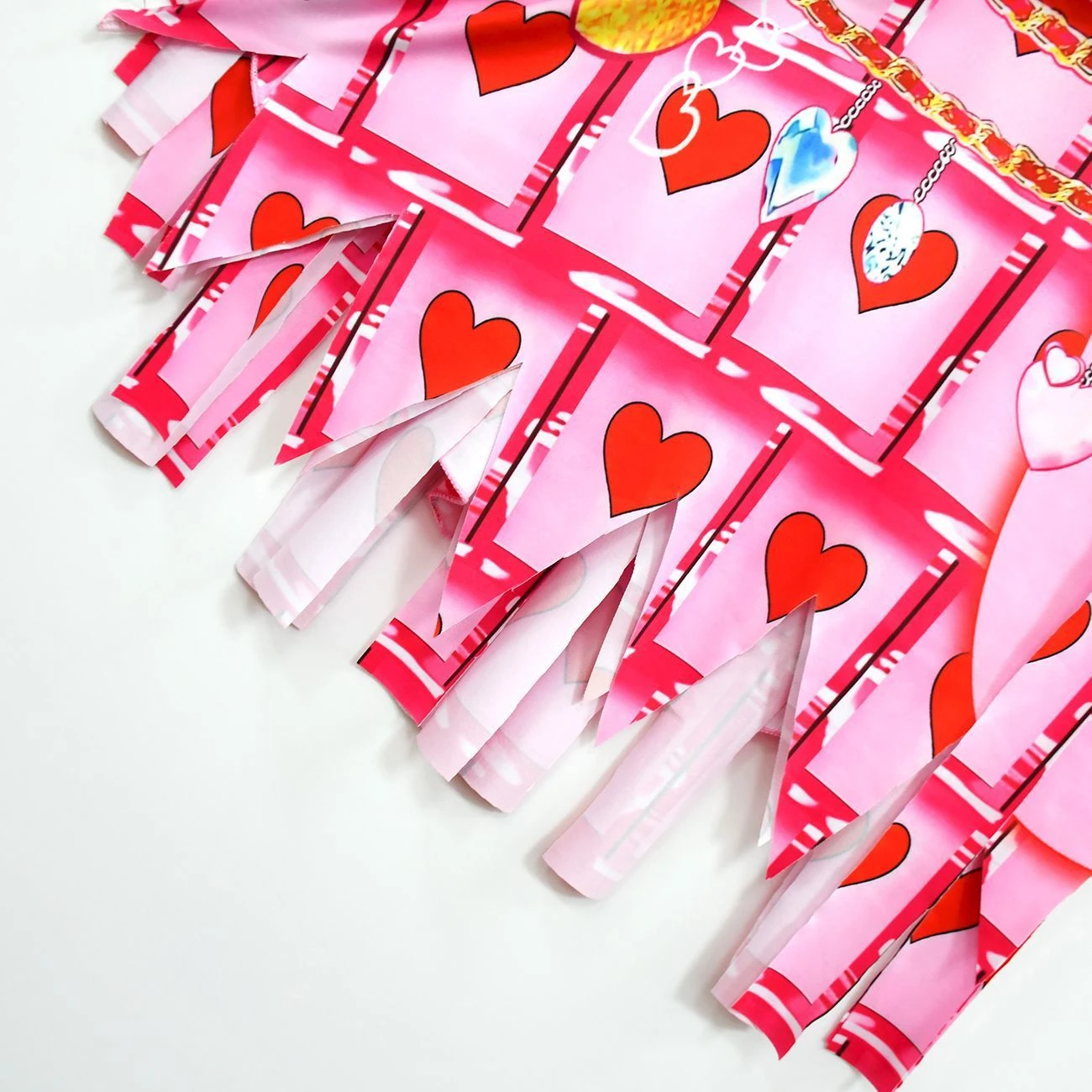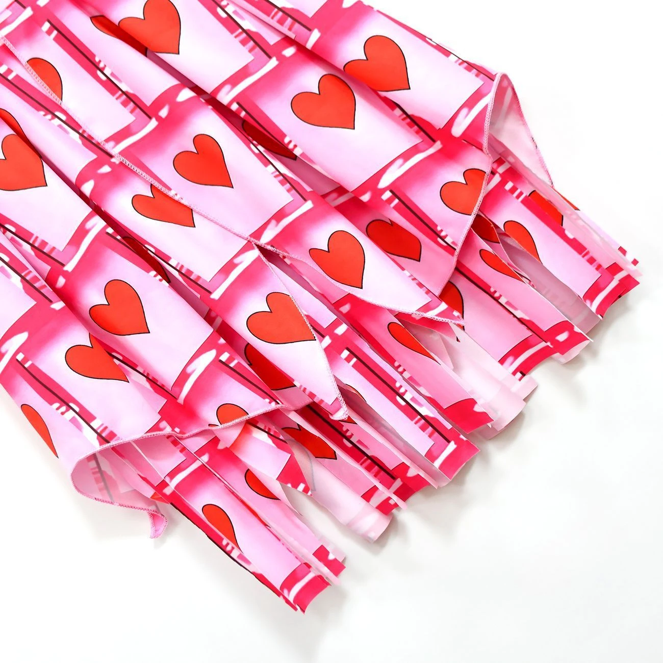 Girls Queen of Hearts Costume Bridget Pink Tassel Dress Wig and Gloves for Birthday Party.