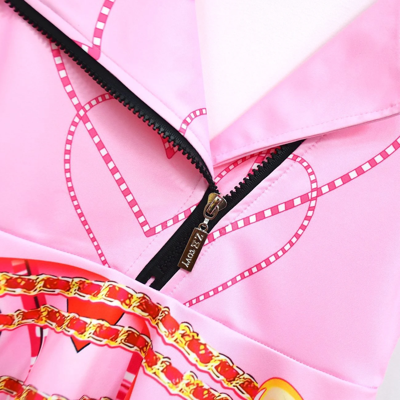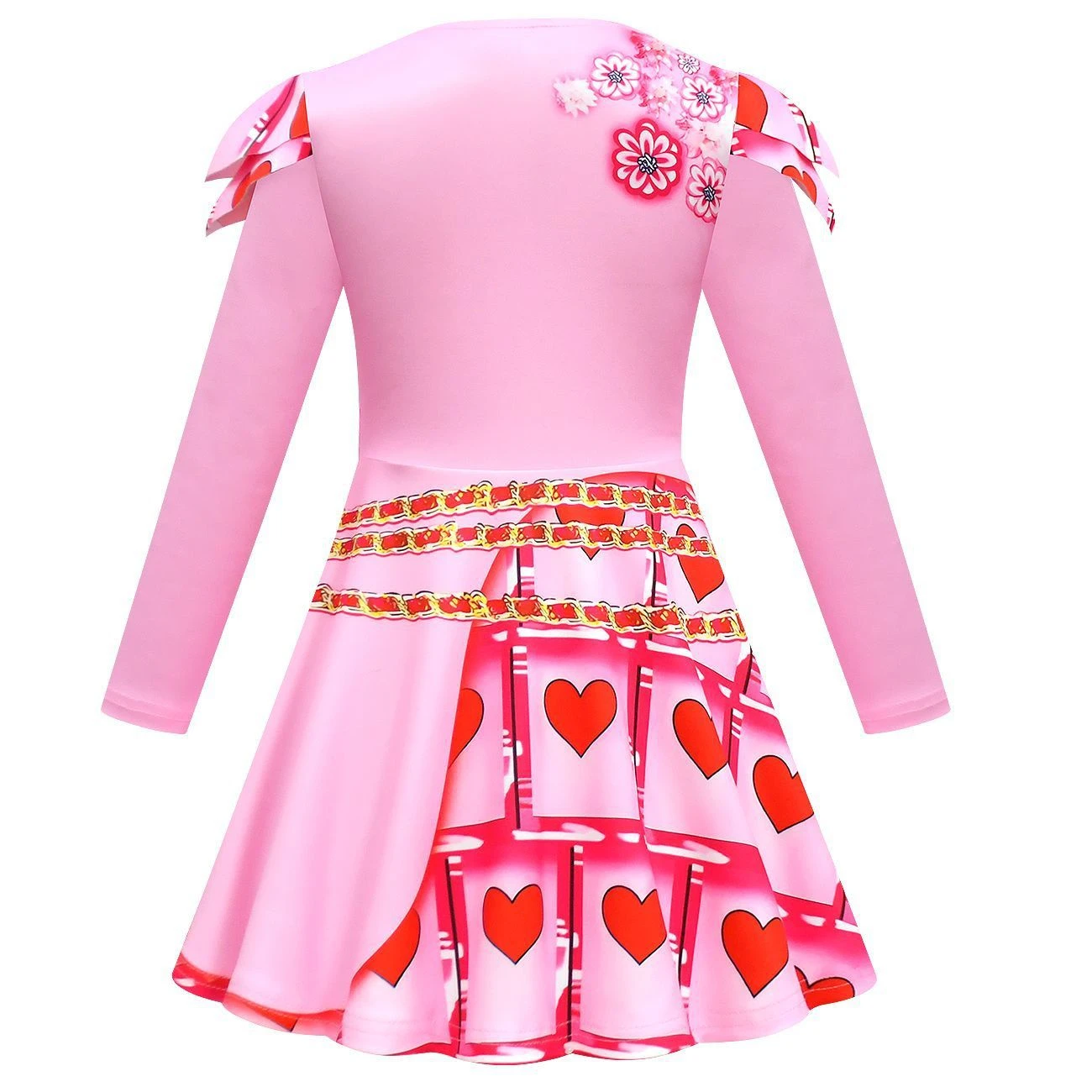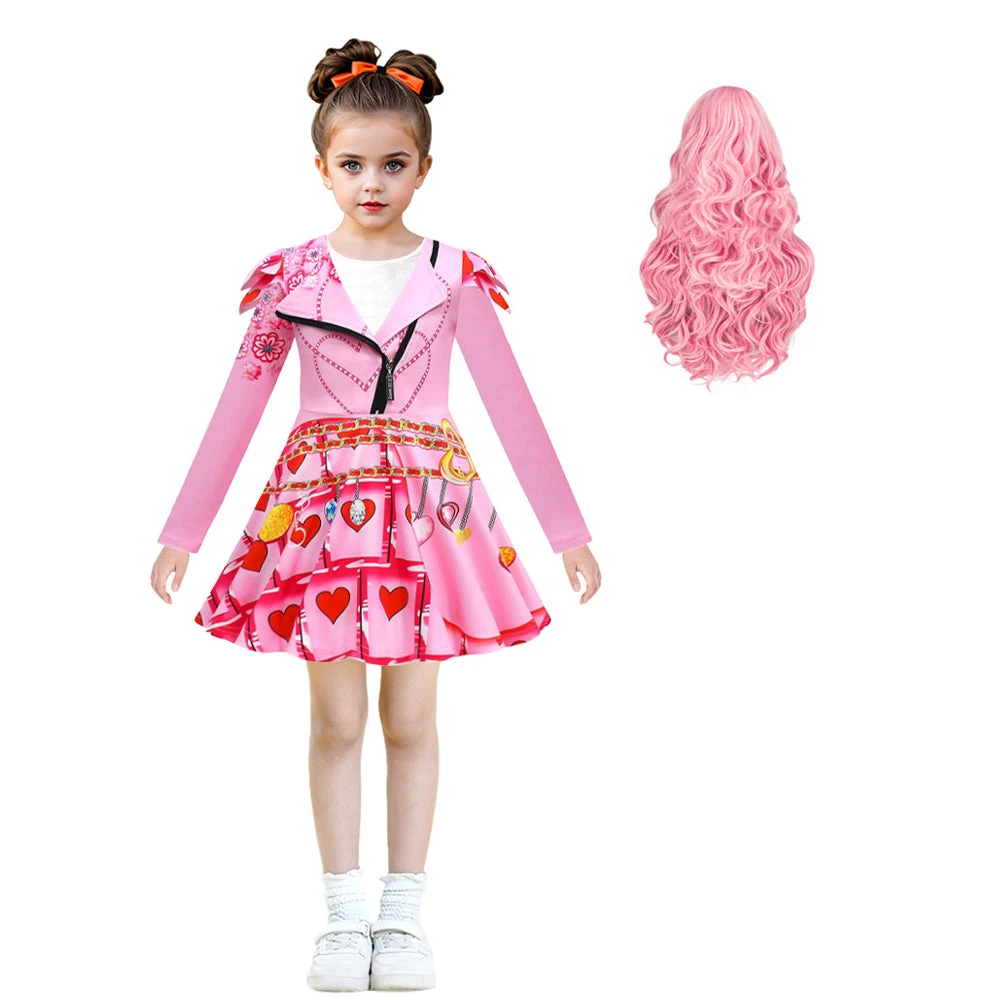 Girls Queen Of Hearts Costume The Rise of Red Pink Dress Pants and Wig for Halloween Carnival.