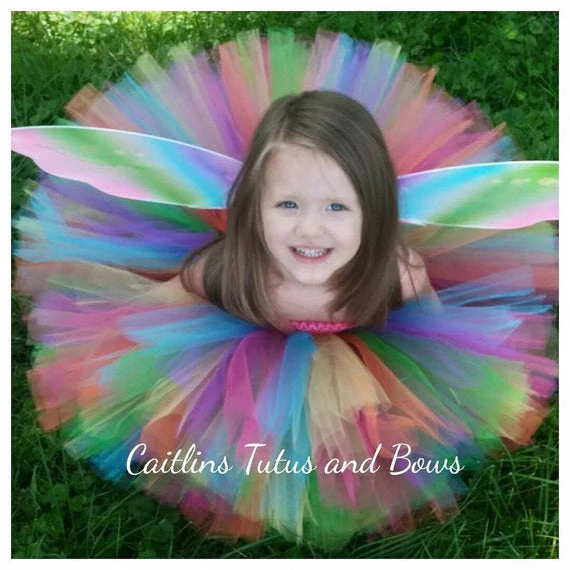 Girls Rainbow Tutu Dress Fluffy Tulle With Butterfly Wing Cosplay Costume
