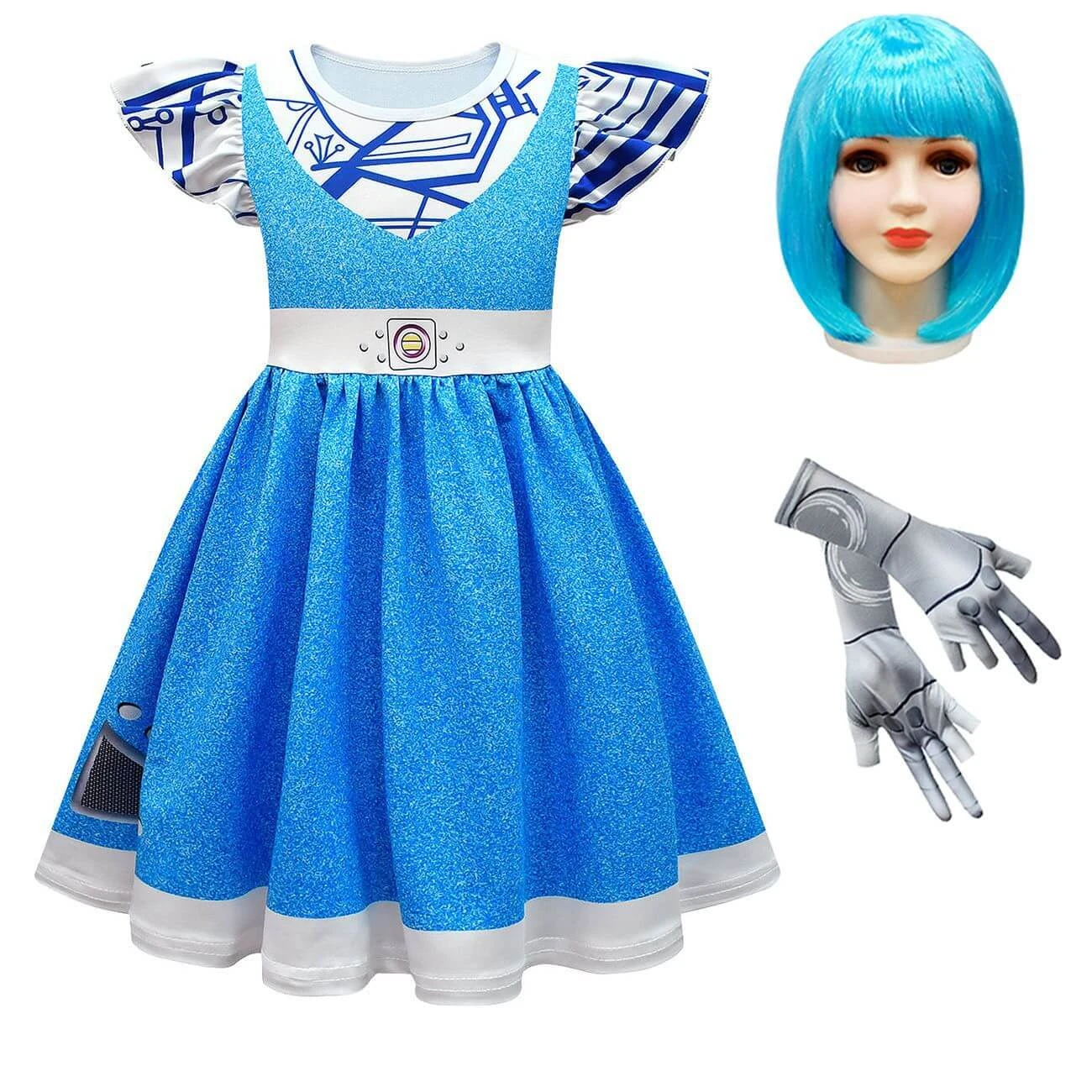 Girls Zombies A-Li Costume Alien dress wig gloves full set for Halloween carnival.Â