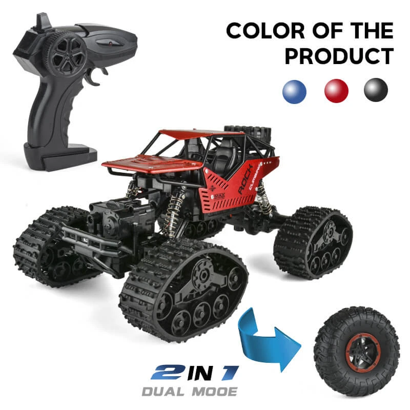 This 2 in 1 off-road climbing truck with TRACK MODE and OFF-ROAD MODE, can easily conquer all difficuities and be the final winner!Â
