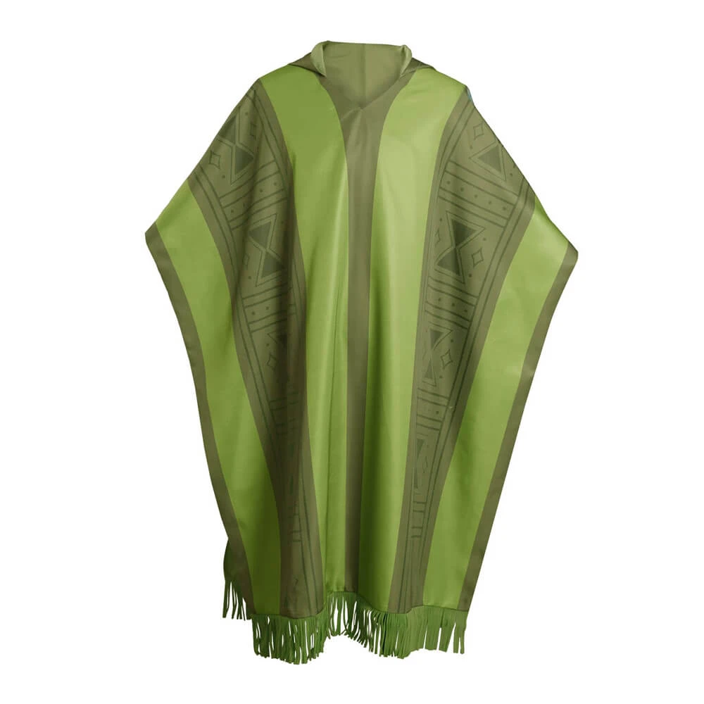 - The cloak uses green as the main color, geometric patterns are embellished on the side, and tassel is added to the hem. Wearing this cape makes you look like a real magician, mysterious and powerful.