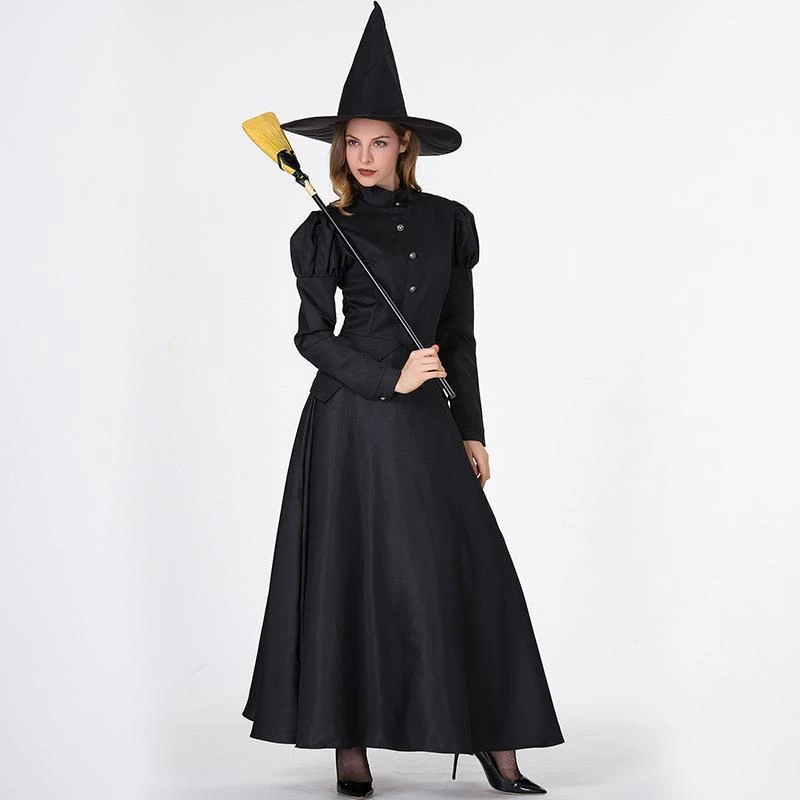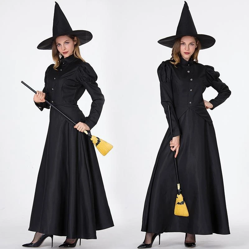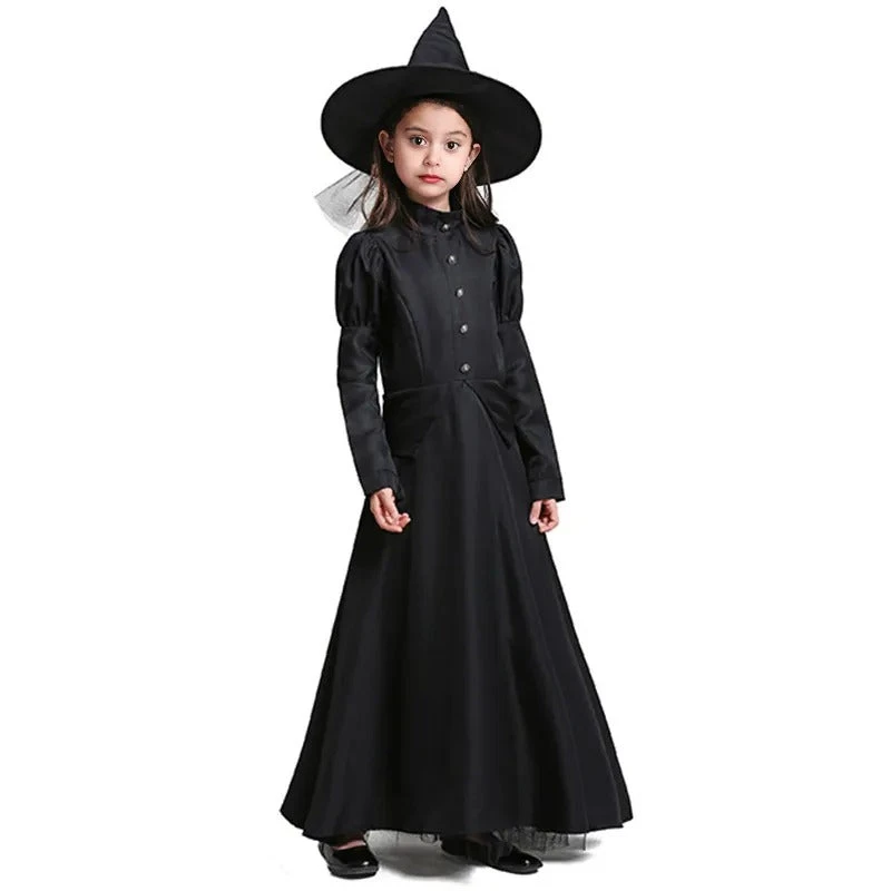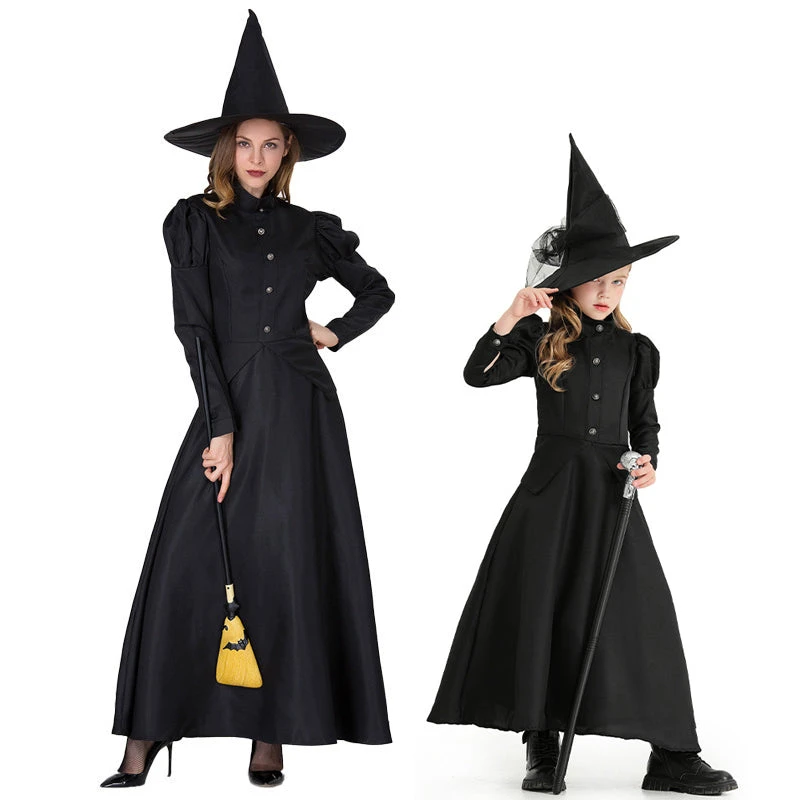 Kids Adult Wicked the Witch Costume Mommy and Me Halloween Cosplay Outfit with Witch Hat.