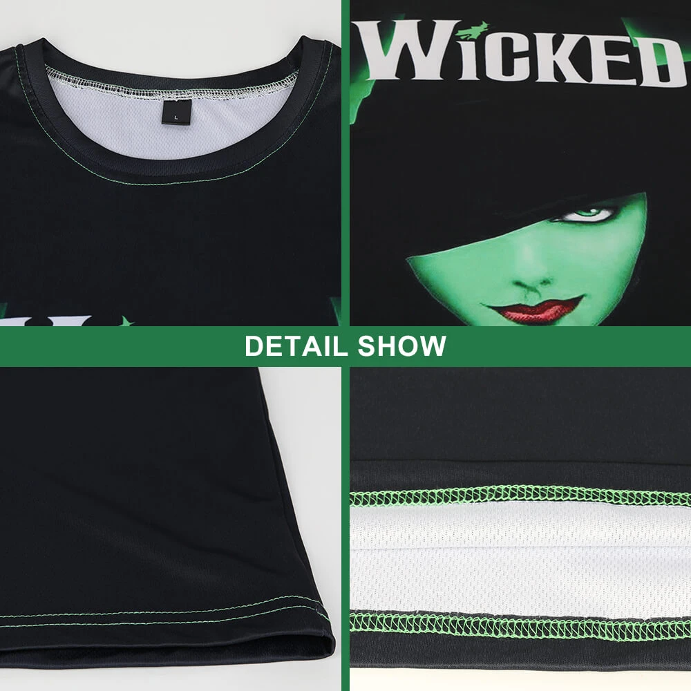 Kids Adults Wicked Costume Green Elphaba T-shirt for Dress Up Party.