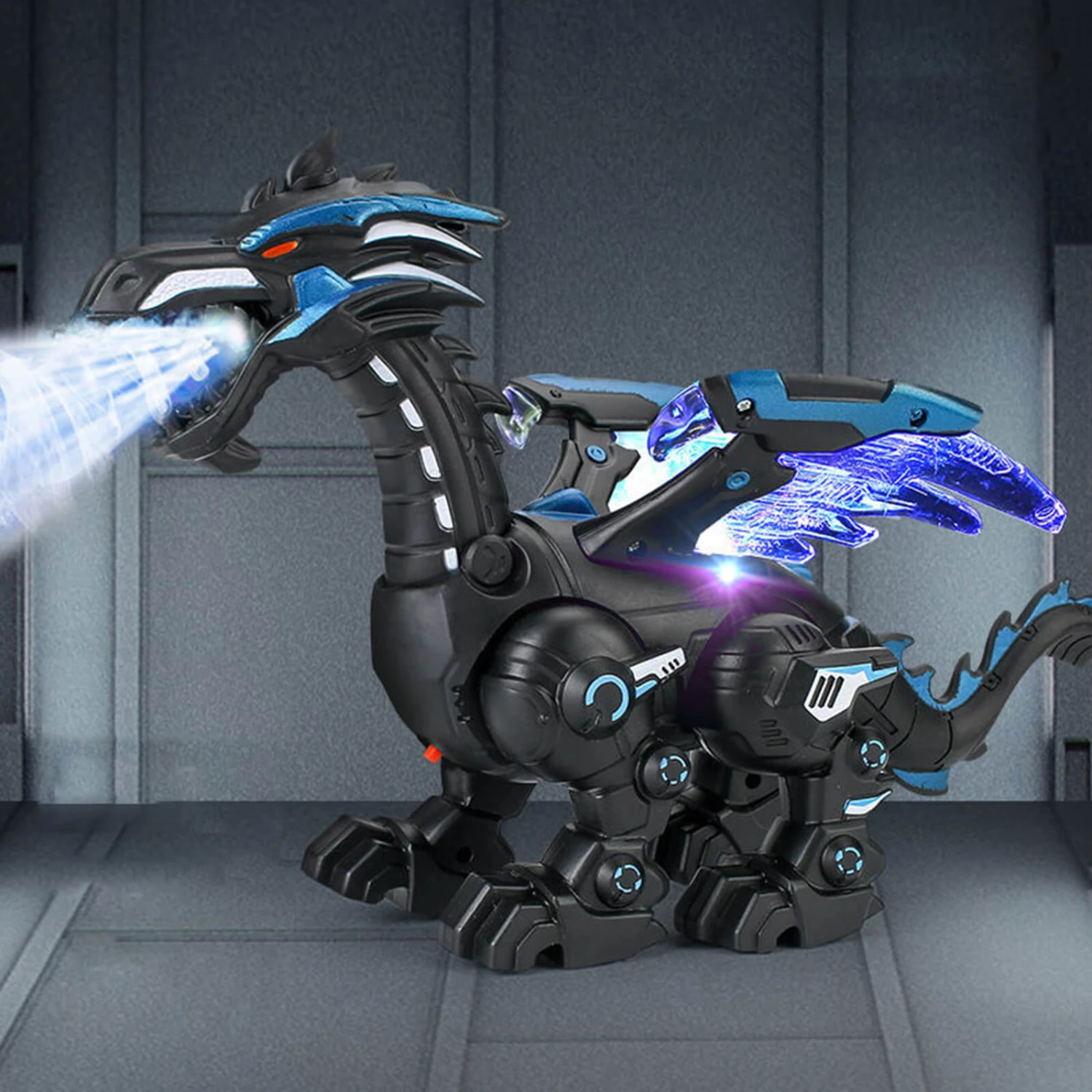 - Walking dinosaur with realistic design and simulation sounds for play. Swing head, spray function and cool lights which add more fun to kids playing time.