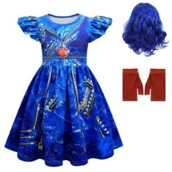 Kids Evie Dress Princess Cosplay Costume Evie Wig Gloves and Dress for Halloween Carnival.