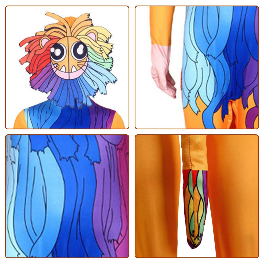 Kids Lion Costume Cute Monster Jumpsuit with Helmet 2pcs Suit for Cosplay Party.