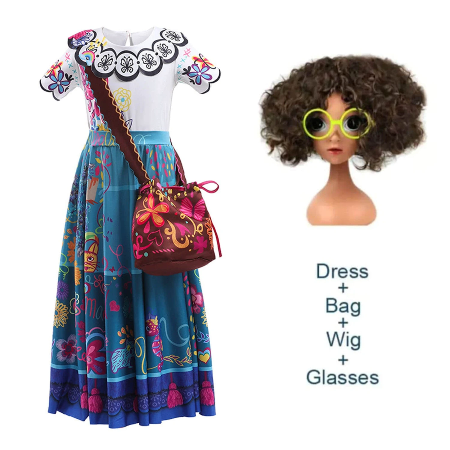 Inspired by Mirabel Costume in latest movie! Make your little one looks just like the character in this beautifully vibrant dress with matching bag.
