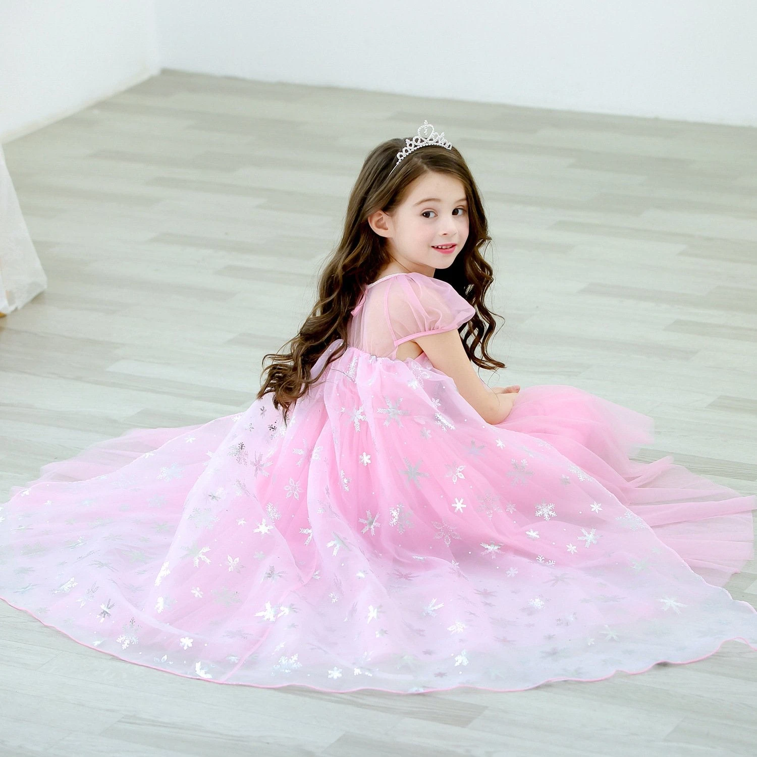 Kid Pink Elsa Dress Summer Party Dress Birthday Dress Up for Grils 3T-10 Years old.