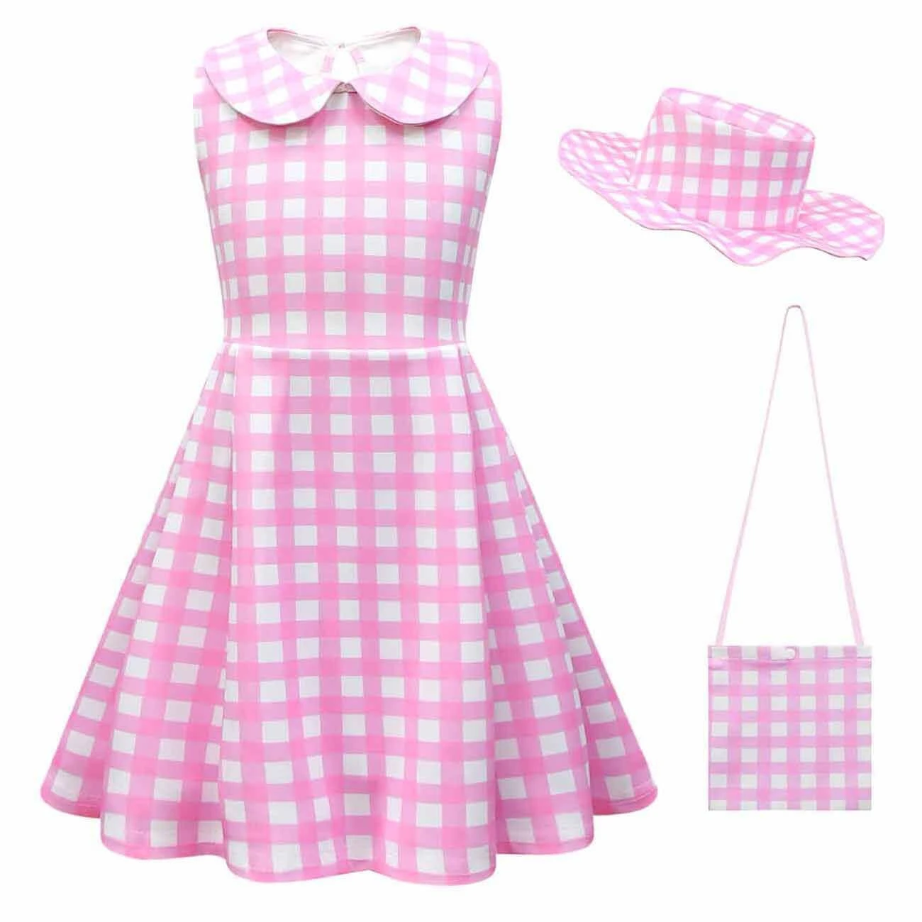 - This pink plaided dress features a peter pan collar, cute and elegant. With keyhole back summary closure design, easy to put on and take off.Â