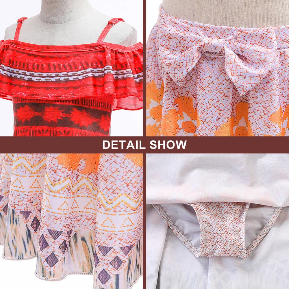 Girls Princess Moana Costume Beach Vacation Swimwear Ocean Adventure Bathing Suit.