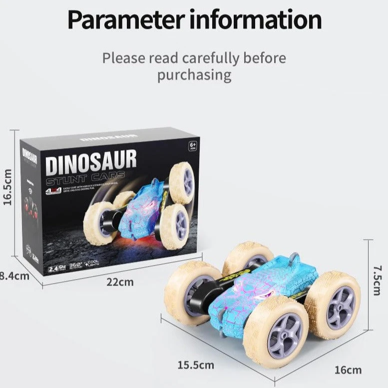 Kids RC Car 2.4G Dinosaur Stunt Car Electric Remoteol Control Car Toy With Cool Crackle Lights.