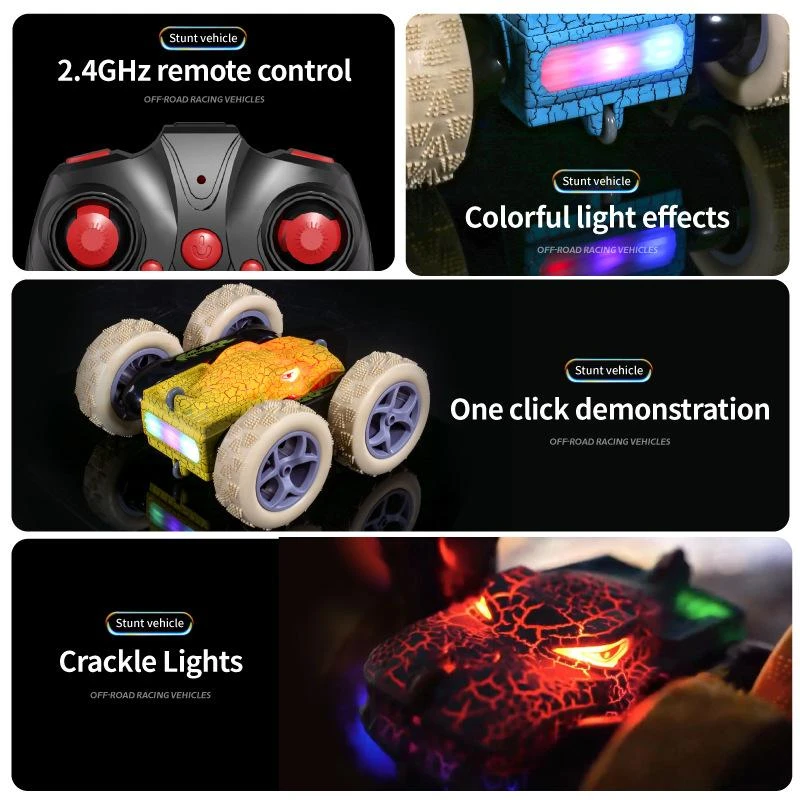Kids RC Car 2.4G Dinosaur Stunt Car Electric Remoteol Control Car Toy With Cool Crackle Lights