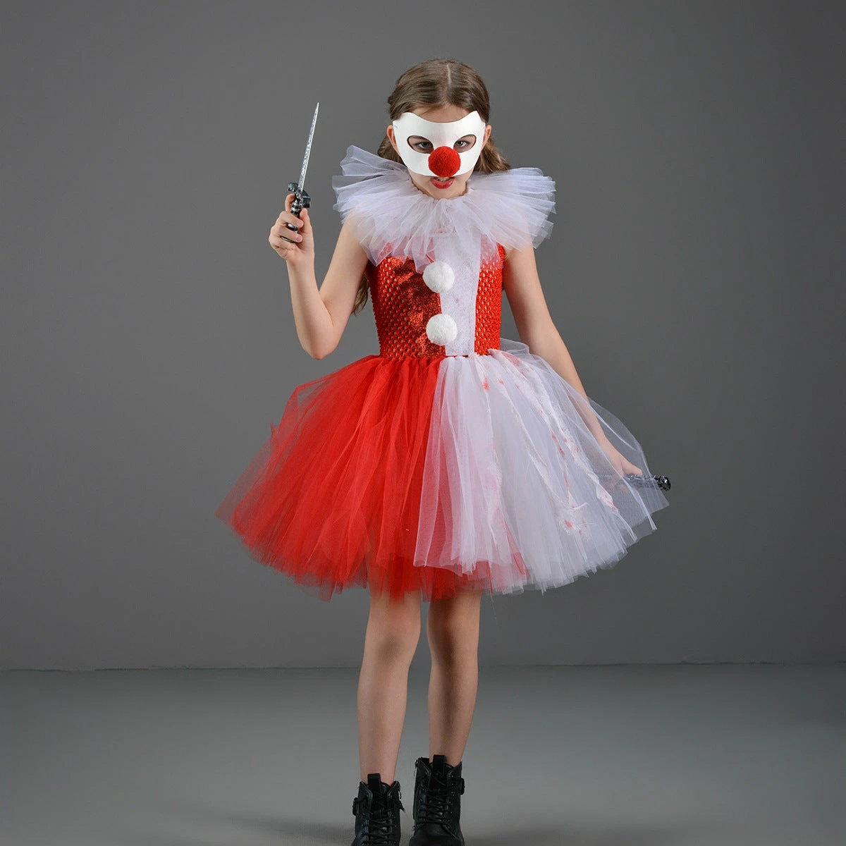 Kids Scary Clown Outfit Halloween Clown Costume Dress Mask and Knife Cosplay Suit.Â