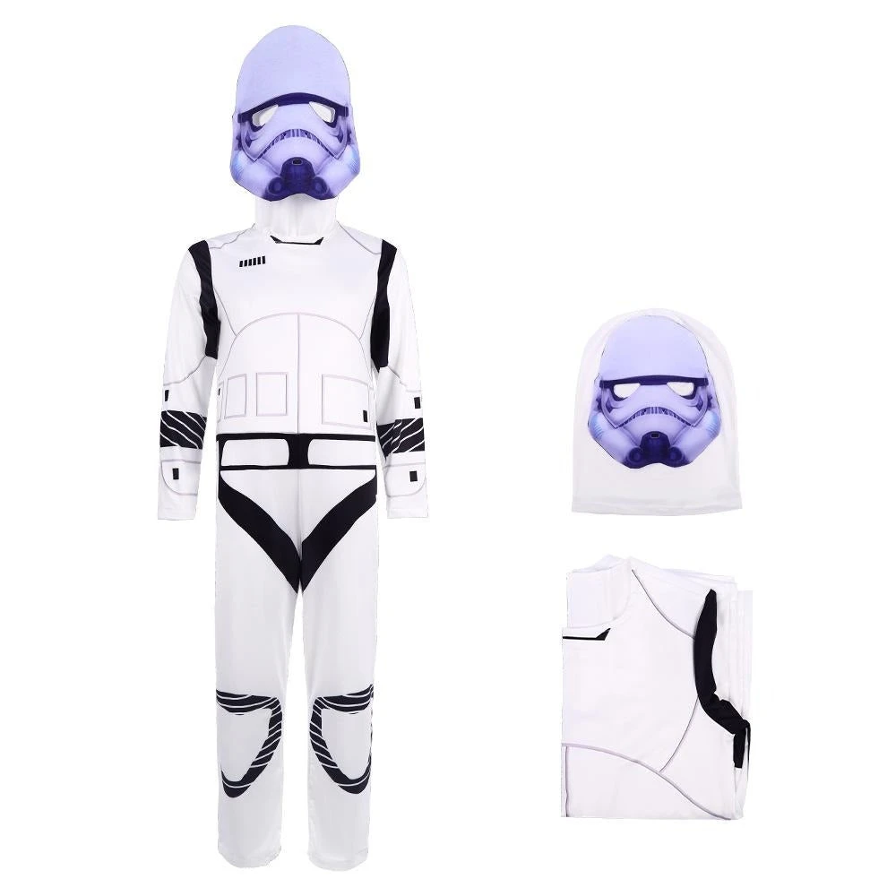 Kids Storm Trooper Costume Imperial Soldiers Jumpsuit Helmet Suit Trooper Bucketheads Outfit.