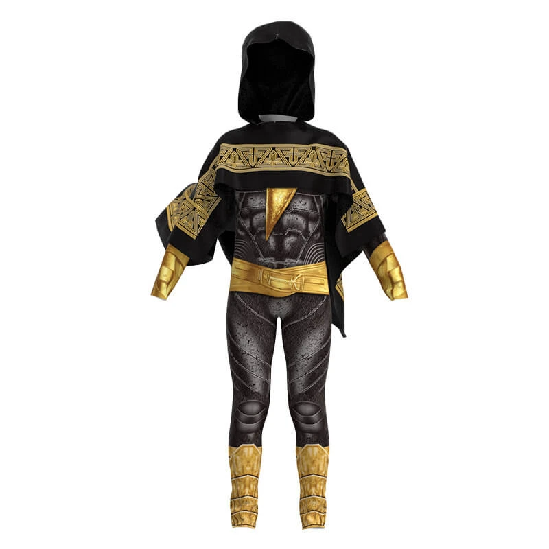 Kids Adult Black Adam Costume Hooded Cape and Jumpsuit 2pcs Suit for Halloween Cosplay.