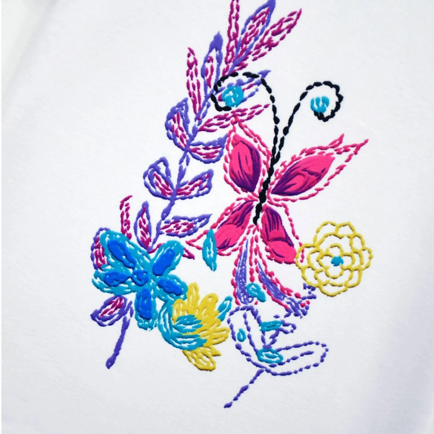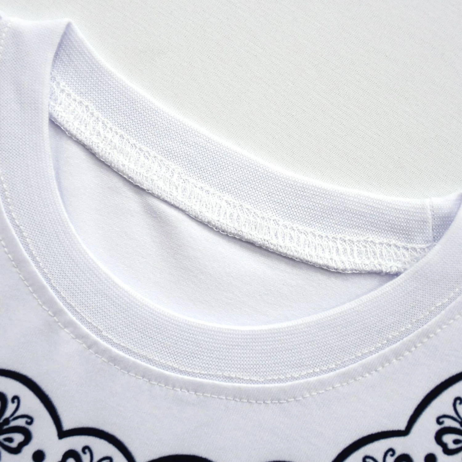 - Dress features a scalloped collar and sleeves with authentic printed-style designs.