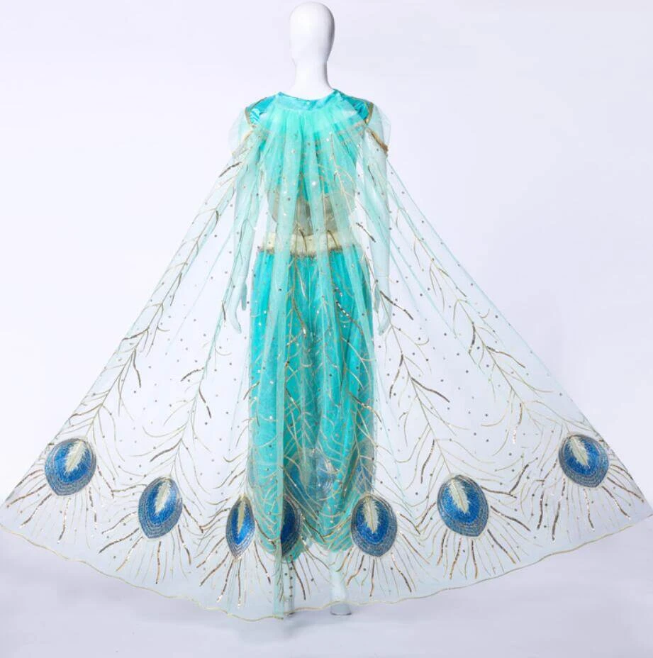 Have the ultimate princess dress up experience in your favorite Princess Dress. This Arabian Princess Outfit is inspired by her story with a character cameo and is made of beautiful satin and organza.