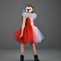 Girls Horror Clown Costume Crazy Joker Outfit Scary Purple Tutu Dress And Gloves For Dress Up Party