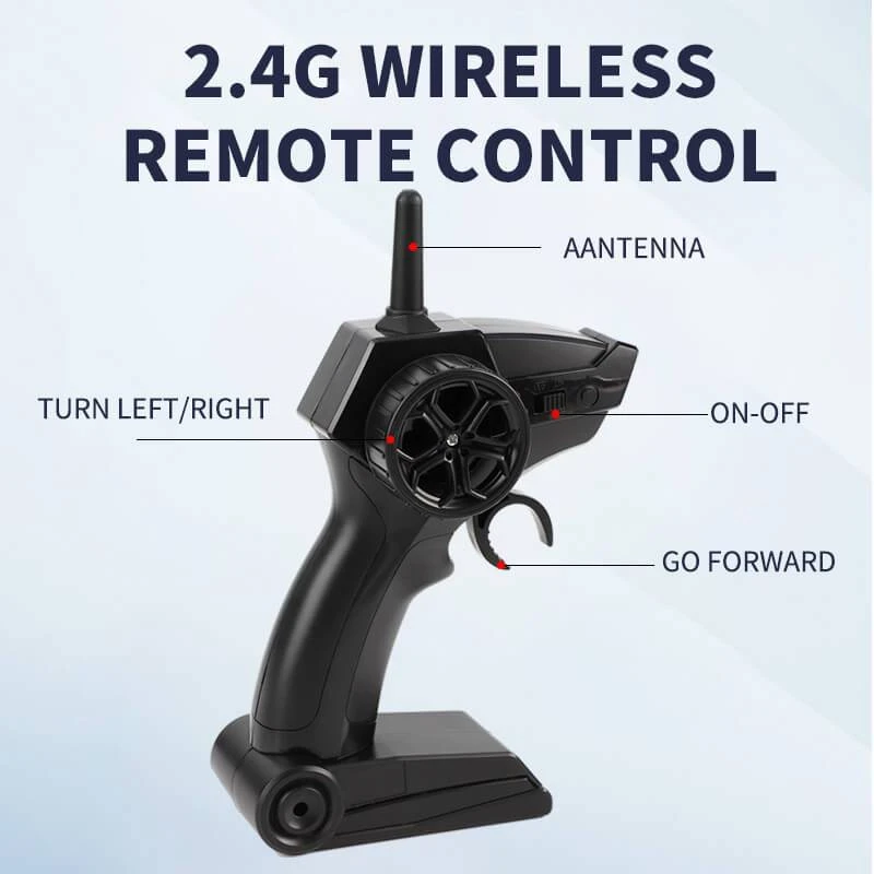 - Functions: forward, turn left/right, waterproof, correct the rudder manually.