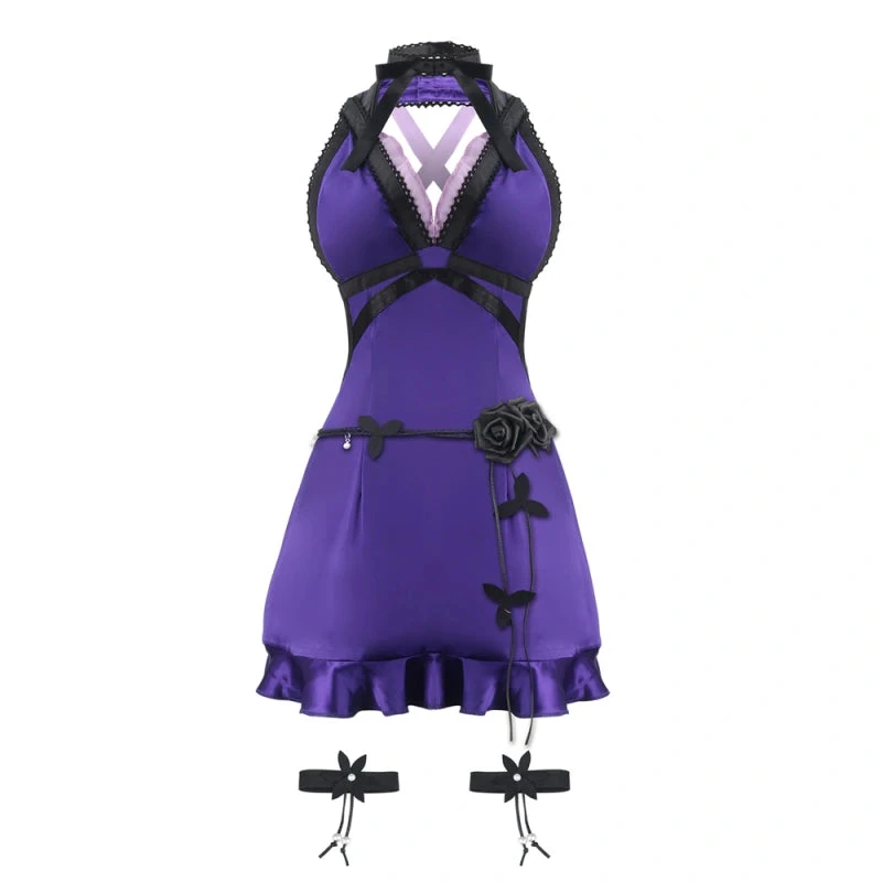 Sexy Tifa Dress FF7 Lockhart Purple Backless Party Dress Halloween Carnival Outfit.